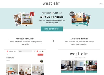 Make it easy for your potential buyer to make purchase decisions by utilizing the UGC they’re creating to offer recommendations or guide their experience. For example, today more and more consumers are turning to Pinterest to develop boards when seeking out home decor inspiration. Knowing this, West Elm utilized Clarifai to build the West Elm Pinterest Style Finder. This online destination allows the user to link to a pinterest board in order to get a list of recommended products, leading to an increase in cart size.