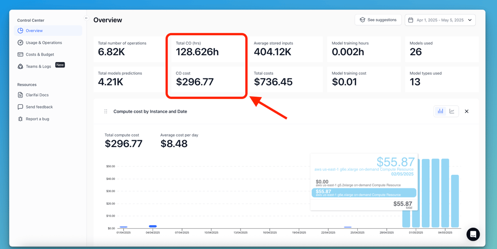 2. Added Compute Hours costs in the Costs tab.