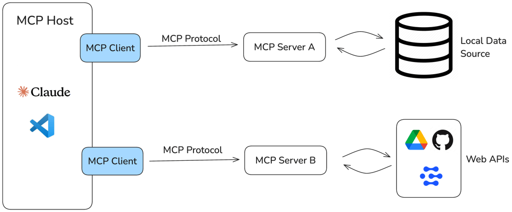 • MCP Host: This is the application where the AI model lives (e.g., Anthropic's Claude Desktop app, a coding assistant in your IDE, or a custom AI app).