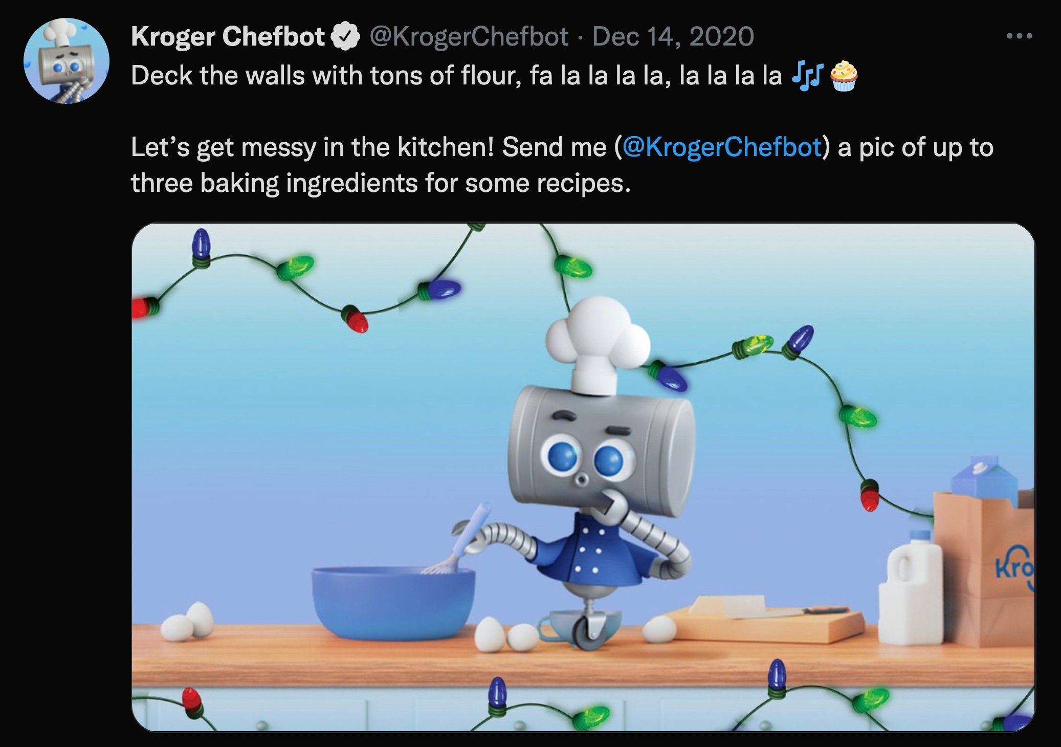 Chefbot AI analyzes photographs of over 2,000 ingredients, unlocking 20,000 Kroger recipes for users to cook.