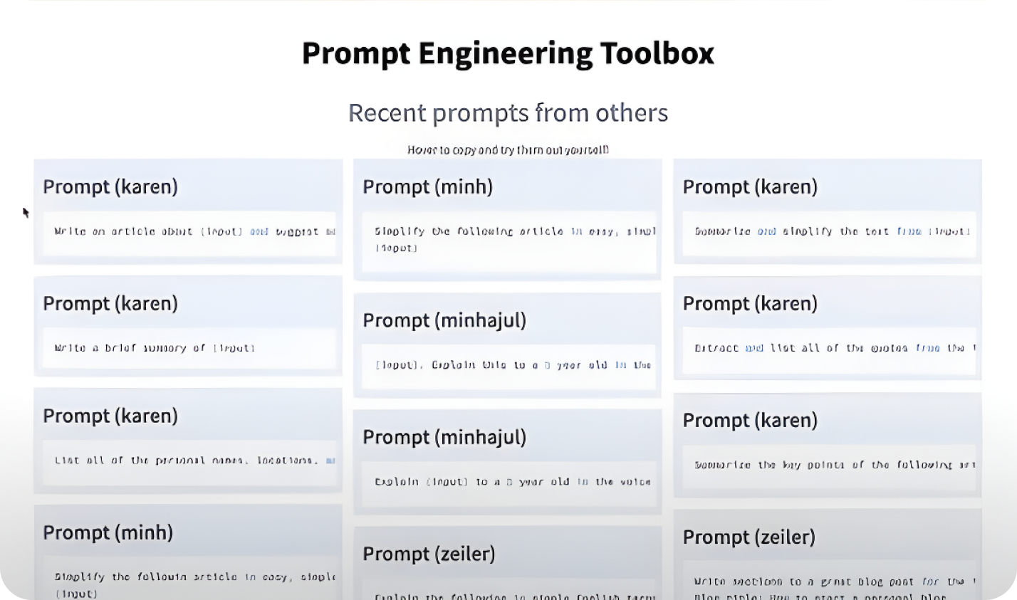 Provide pre-defined input phrases or questions, serving as starting points that guide content generation. This results in more focused, contextual, and quality outputs aligned with the desired output themes. With a wide array of prompts, the AI can better generalize and adapt to user needs, leading to more robust and flexible applications.