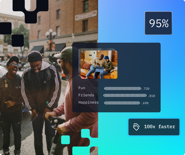 Use AI and automation to tag content faster and train models to detect and classify undesirable content 100x faster with 95% greater accuracy than humans can do on their own.