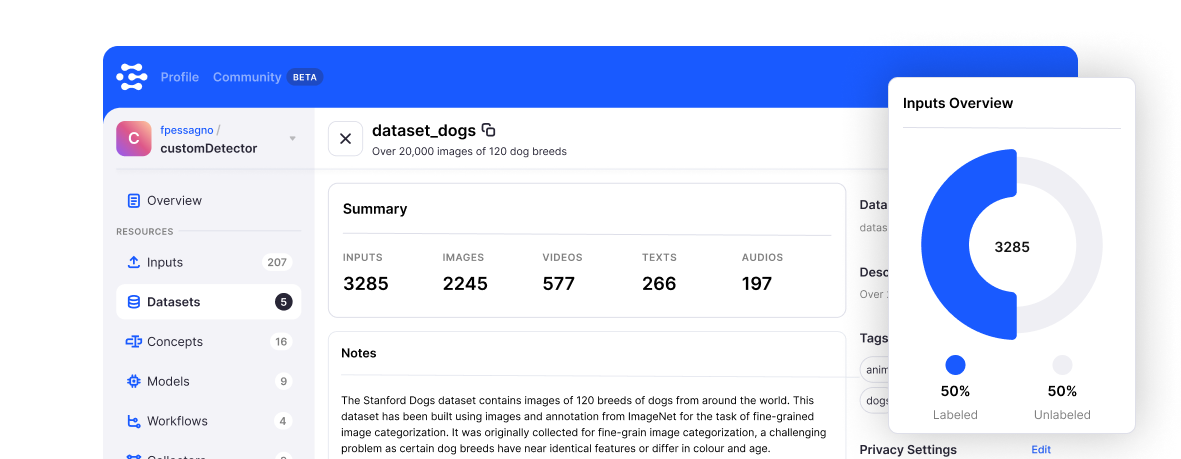 Join our community of Clarifai users. Explore and share models, workflows and more.